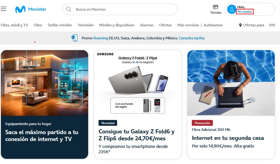 - Accede a la web de Movistar o abre la app Mi Movistar.