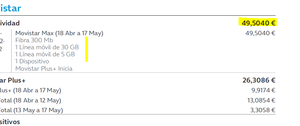 Buenas, Con el nuevo cambio de tarifas nos han cobrado una tarifa superior a la que teníamos contratada. Hasta ahora teníamos fibra 300MB con 2 líneas (30GB y 5 con llamadas ilimitadas en una de el...