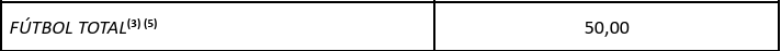 Penalizaciones económicas si el Pack TV adicional contratado (En este ejemplo, Fútbol Total, + 50,00 €/mes) se diera de baja antes de cumplirse los primeros 15 días desde la fecha de su contratación: