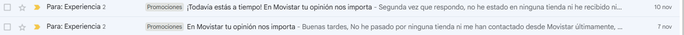 He recibido varios email de: hola@calidad.movistar.es pidiéndome la satisfacción sobre una consulta o gestión: