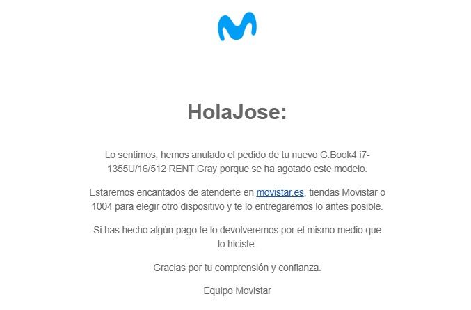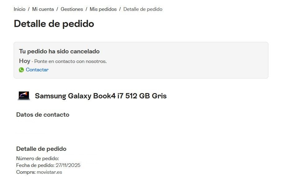 Hola, hago este post porque el pasado 27 de noviembre solicité este portátil Samsung que tenía disponible a 0 €. Pasaron varios días y pregunté en atención al cliente por WhatsApp que cuándo me llegaría, me respondieron que sobre el día 3, pero la sorpresa ha sido hoy cuando me llega un SMS diciéndome que cancelaron el pedido porque está agotado. No tiene sentido que haya podido realizar la compra en la web y que después de estar el pedido en preparación varios días, me acaben diciendo que está agotado.
