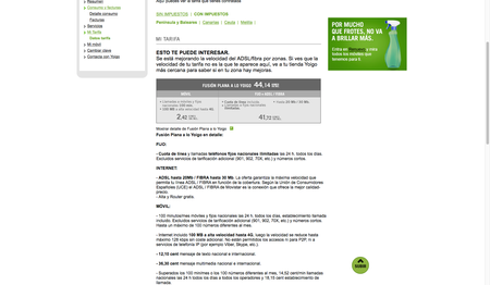 Y claro lo del Claro lo del plazo estipulado, me parecía bien que yo sabiéndolo siguiese en Telefónica y es lo que toca la permanencia si me lo comunicasen, pero lo que no voy consintir es que el día 22 de abril firmé un contrato con Telefónica y otro contrato con yoigo, en el cual ya se sabia de la modificación de la tarifa en esos días, y que me firmé una tarifa de 38€ de ADSL BASE en el contrato, cuando en 20 días se cambiaban las condiciones Telefónica ni me llamó, y que vamos, me enteré el otro día navegando en internet de lo que me habéis hecho.