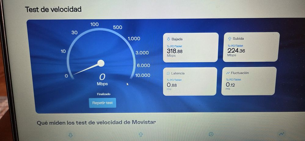 velocidad muy baja en subida y bajada de fibra 1 Giga en primera residencia