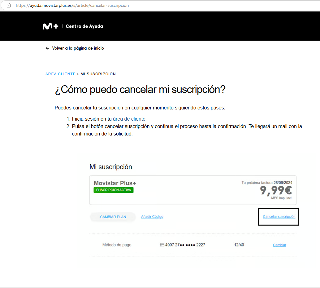 Yo esperaba que apareciera algo más claro, del tipo" cancelar suscripción a Movistar Plus TV", como sucede con otras plataformas.