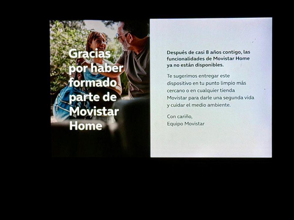 Movistar ha comunicado oficialmente a sus clientes que el dispositivo Movistar Home quedará inservible y recomienda reciclarlo o entregarlo en una tienda Movistar”