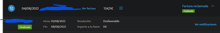 Sentimos comunicarte que la respuesta recibida por el área encargada ha sido desestimada la reclamación.