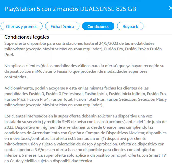 Hace mas de un mes cambié fibra y movil a movistar. Ademas, me puse la tv. Todo bien, hasta que un comercial me llamo para ofrecerme la posibilidad de adquirir un dispositivo extra con mi tarifa. Hablando con la familia y viendo el catalogo de oferta con mi contrato, ofrecido por la propia web y el comercial en base a mi contrato, decidimos adquirir la ps5 por un importe de 10,50 al mes (tampoco te lo regalan). La sorpresa fue que realizando el tramite, sorpresa! No me deja realizarlo… Pregunto el motivo por el cual no puedo adquirirlo y aqui empieza un sin fin de excusas… entre las cuales son: