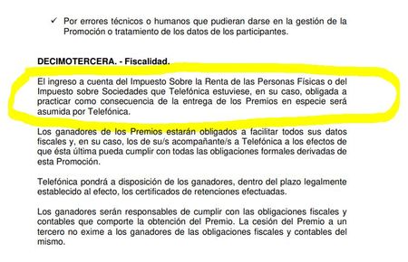 Tal como hemos indicado, Telefónica no se hace cargo de la tributación que le corresponda al premiado.