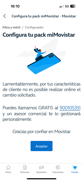 Hola. Tengo problemas para hacer gestiones online en la web y en la app. Me sale un mensaje de que no puedo hacerlas por mis características de cliente (ver en foto). Ni en el 1004 ni en el 1002 de a...