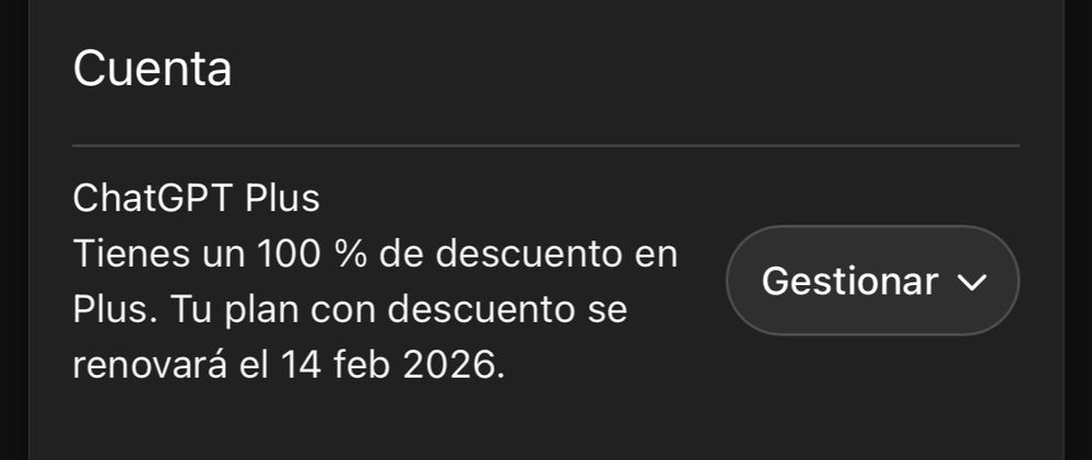 El pasado día 14/02/26 active desde Mi Movistar la promoción de 6 meses gratis de ChatGPT. El proceso se realizó sin ningún problema permitiéndome introducir el medio de pago inclusive. Revisando el perfil de ChatGPT aparece como usuario Plus pero la renovación no indica 6 meses de promoción, si no solo 1 mes.