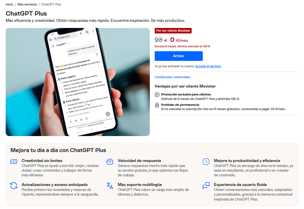 Esa alternativa anterior, Perplexity Pro NO está disponible desde Movistar...Fue posible activarla, para un período de 12 meses, durante el pasado año 2025 y a partir de aquel 23 de enero de 2025