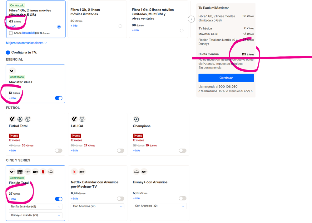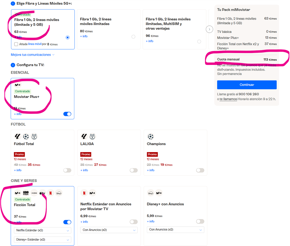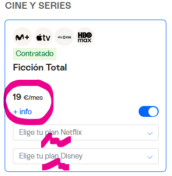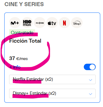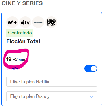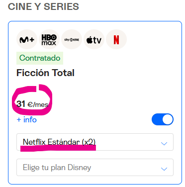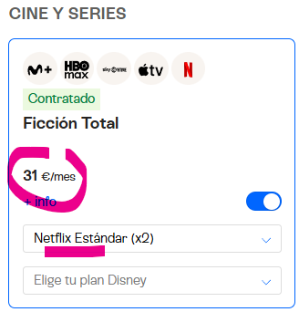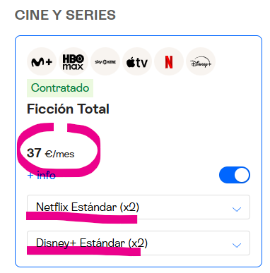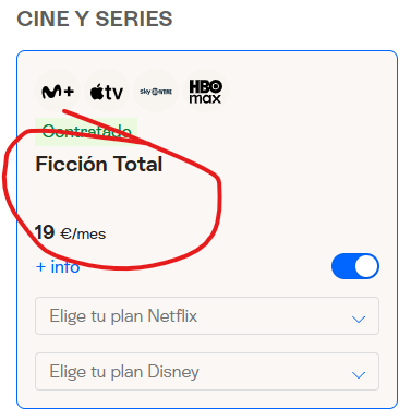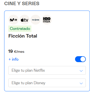 Actualmente tengo miMovistar con Ficción Total más Netflix y Diseny+ por 113€/mes.