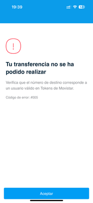 Hola, quiero enviar tokens a un nuevo usuario que recientemente es de movistar y esta adscrito a tokens y me sale este error que no forma parte de movistar. lo podeis revisar? muchas grac...