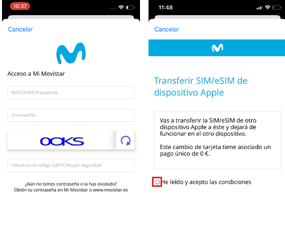 El cambio de tarjeta SIM física a E-SIM desde tu IPhone es posible siempre y cuando tengas una línea con tarifa activa (No prepago), antes de realizar el cambio debes estar conectada a una red wifi, ya que al momento de hacer el proceso pierdes la conexión a internet y si no estas conectada a una esta no completaría su proceso de transferencia provocando que no se active la tarjeta Esim y dejando desactivada la SIM, Si ocurriera esto la única forma de solucionar el inconveniente seria haciendo un duplicado de la tarjeta.