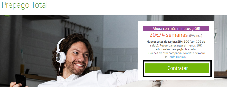 Si pinchas aquí te aparecerán las tarifas de móvil prepago disponibles.