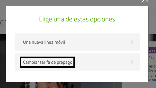 Una vez ahí te da la opción de "Cambiar Tarifa de Prepago"