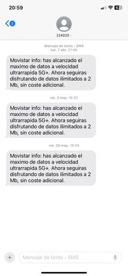 Buenas tardes, tras superar el máximo de datos a velocidad ultrarrápida 5G+ recibo un mensaje en el móvil  en el que se me informa que sigo disfrutando de datos ilimitados a 2mb, adjunto foto   Mi ...