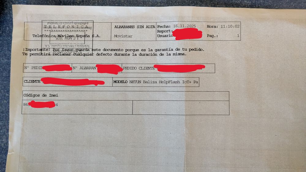 La semana pasada recibí el pedido del pack de 2 balizas v16 Help Flash Iot+ que compré en la web de Movistar. En los documentos que había dentro del paquete (el sobre de plástico de Zeleris) junto a las balizas, entre otros había un documento de garantía en el que se especificaba sólo un IMEI de una de las balizas. ¿Pueden mandarme el documento de garantía de la otra baliza con su IMEI correspondiente por favor? Ya que si hay algún defecto de funcionamiento de la baliza que no tiene su número de IMEI en el documento de garantía y debo hacer uso de ella, ¿qué sucederá?