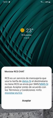 Tengo el mismo problema que se ha descrito en este foro u que no ha sido solucionado. Me salta el mensaje de RCS Chat para aceptar las condiciones y no quiero aceptarlo, pero no hay opción de rechazar.