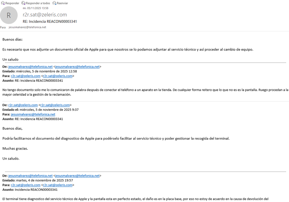 Incidencias grave reparación móvil en garantía