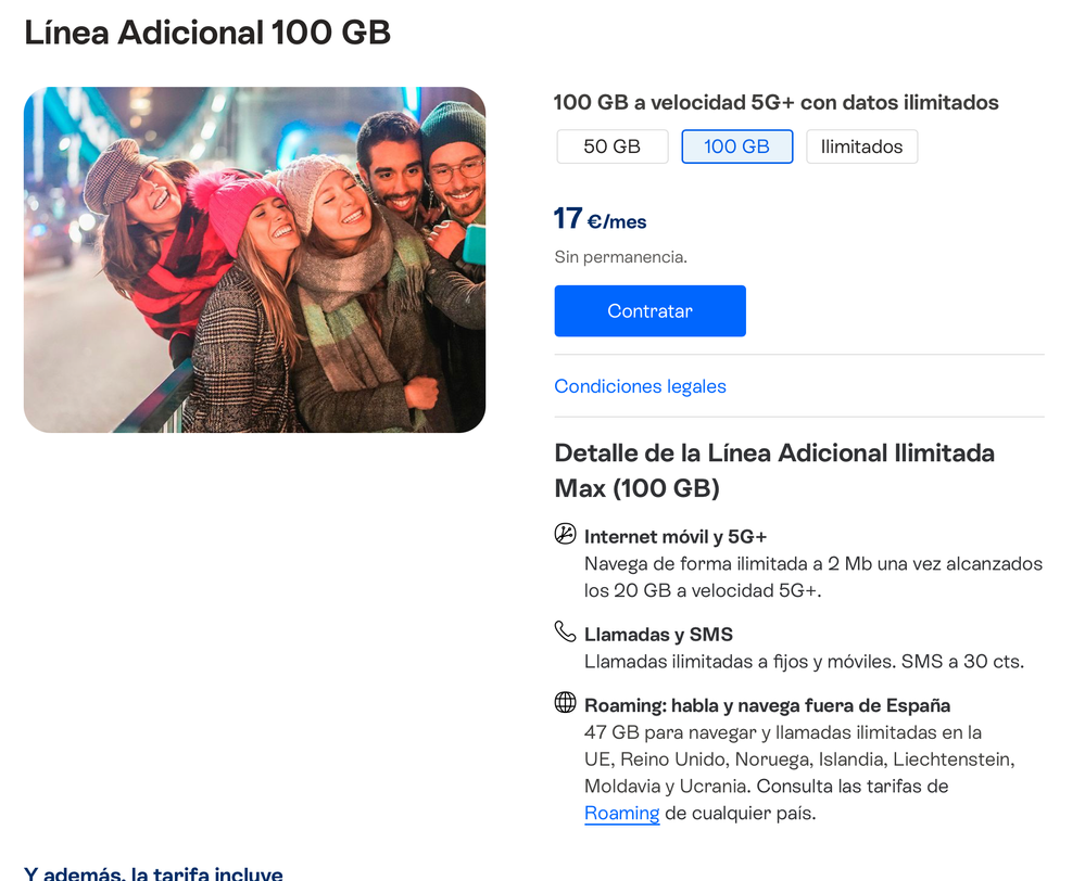 Pone muy claro que sólo se puede navegar a máxima velocidad hasta 20 gb, cuando deberían ser 100