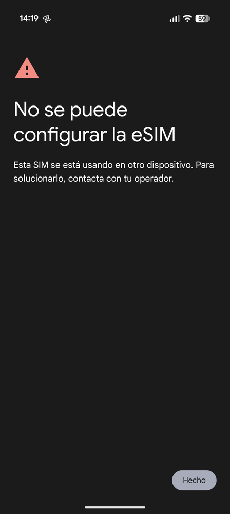 Si trato de hacerlo directamente con la app de Movistar, el error que me aparece es que la eSIM está instalada en otro dispositivo.