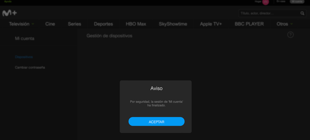 "AVISO. Por seguridad, la sesión de "Mi cuenta" ha finalizado"