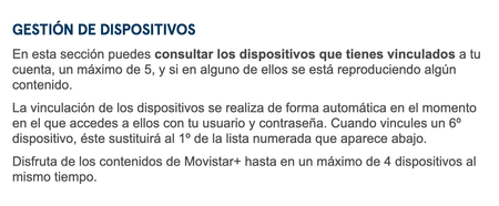 Hola. Tenemos contratado Movistar+ y activo el servicio Yomvi con hasta 5 dispositivos fuera de casa con reproducción simultánea. El problema es que estando dentro de Gestión de dispositivos, viendo ...