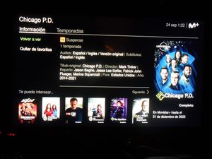 En algunas series (Movistar Fusión: Series) hay episodios ocultos que no se pueden ver normalmente. Tenéis mal puestos los metadatos. En "Chicago PD", 9ª temporada, el sistema dice que está compl...