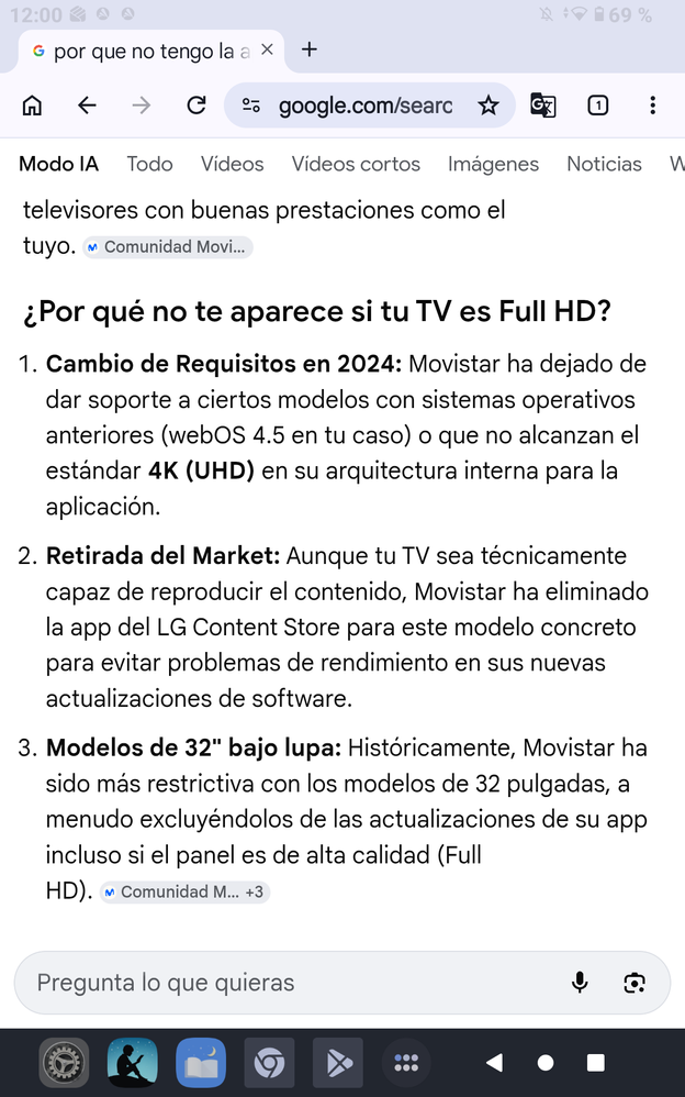 Buenas, he recibido el siguiente mensaje de Movistar Plus+: "Queremos informarte con antelación de que, a partir de abril, tu televisor dejará de ser compatible con la última versión de Movistar Plus+.