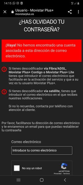 Para poder ayudarte necesitamos que nos facilites por mensaje privado (DNI, nombre y apellidos del titular del contrato, nº de teléfono móvil, la dirección de correo electrónico que quieres que sea usuario de Movistar+ en tus dispositivos, copia del DNI del titular por ambas caras, los cuatro últimos dígitos de la cuenta bancaria donde están domiciliados los recibos y el importe de una de tus 3 últimas facturas).