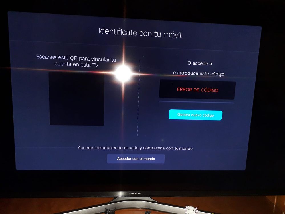 Llevo varias semanas intentando configurar movistar plus en una TV Samsung relativamente reciente que tengo en una segunda residencia. He descargado la aplicación Movistar Plus y cuando intento proporcionar las credenciales aparece la imagen adjunta. Además, si intento acceder con el usuario y contraseña, me indica que no es posible acceder de forma temporal.