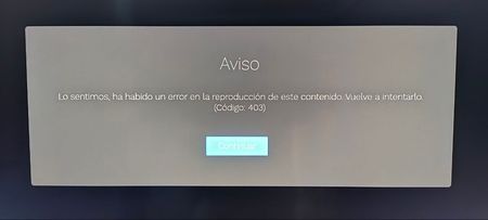 - El mensaje en los Android TV es el de la imagen del primer post, en el resto de dispositivos no sale mensaje, simplemente la reproducción no comienza nunca.