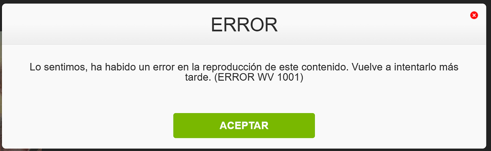Se ha producido un error al reproducir este contenido (ERROR WV 1001)