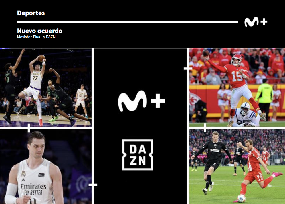 Movistar Plus+ amplía su alianza con DAZN e integrará en su oferta DAZN Baloncesto, con la Liga Endesa y una selección de partidos de NBA, además de la NFL y un partido por jornada de la Serie A y la Bundesliga