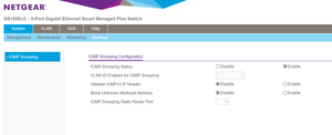 Respecto a la tercera opción es algo más polémica. Lo ideal es habilitarla, por supuesto. Esta opción lo que va a hacer es bloquear el tráfico Multicast que para el Switch es desconocido. Entrar en detalles en esto es complicado, pero digamos que es la alternativa de estos Switchs "lite", a sus hermanos más avanzados que permiten un control mucho más granular sobre por que puerto y políticas se permite el tráfico Multicast. En realidad no lo digo como algo malo, un usuario doméstico encontraría tremendamente tedioso configurar bien otro tipo de Switchs.