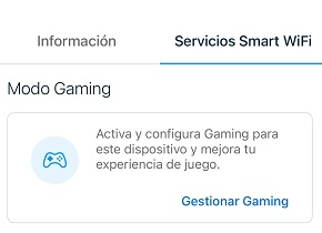 En la parte superior, pulsamos la pestaña de Servicios Smart WIFI. A continuación pulsamos sobre Gestionar Gaming.