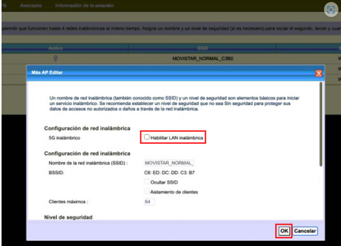 - Y desmarcamos la opción "Habilitar LAN Inalámbrica" y pulsamos OK para salvar los cambios.