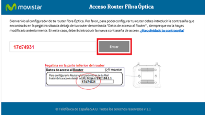La contraseña de acceso se encuentra en la parte inferior del Router, encima del código de barras: