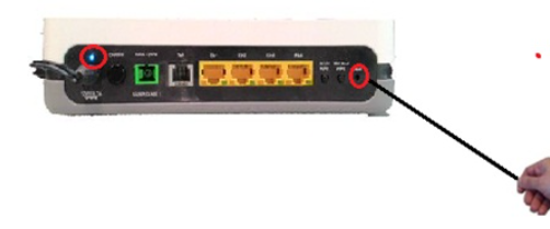 - Con el equipo encendido, presiona con un objeto punzante el pulsador Reset situado en la parte posterior del Router durante al menos unos 15 segundos y después suéltalo.