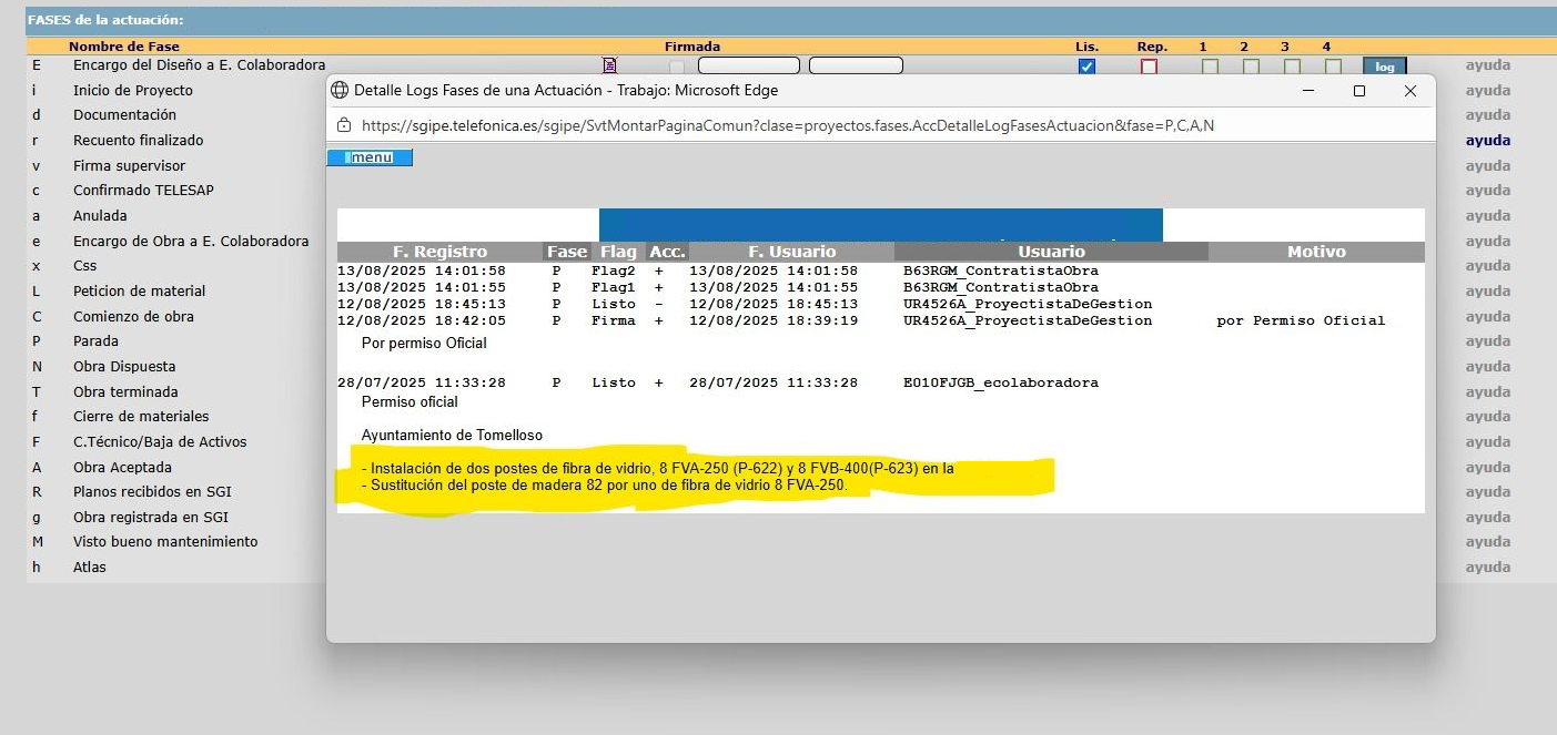 Hola, en la plataforma Petter, la actuación 8747651 está parada desde el 12/08/2025 por que el Ayto se supone que la tiene bloqueada al no facilitar el permiso.