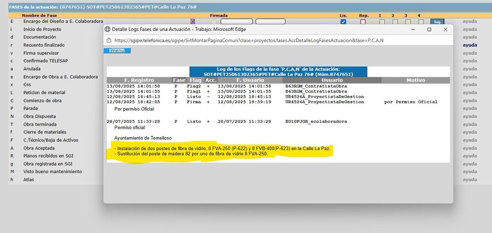 Hola, en la plataforma Petter, la actuación 8747651 está parada desde el 12/08/2025 por que el Ayto se supone que la tiene bloqueada al no facilitar el permiso.