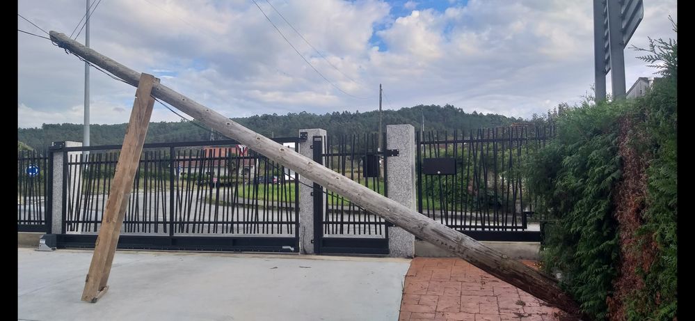 En octubre de 2022 se cae el poste de madera que tengo al lado de casa en donde se sujeta el cable de fibra óptica que llega a mi casa. Después de infinitas llamadas para que me lo retirasen y varios técnicos que llegaban y decían que no era su trabajo, llegó uno que me dijo que si le ayudaba lo retiraba y así podría salir con el coche de mi vivienda.
