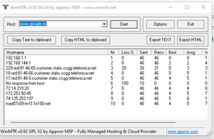 WinMTR v0.92 GPL V2 by Appnor MSP - Fully Managed Hosting & Cloud Provider