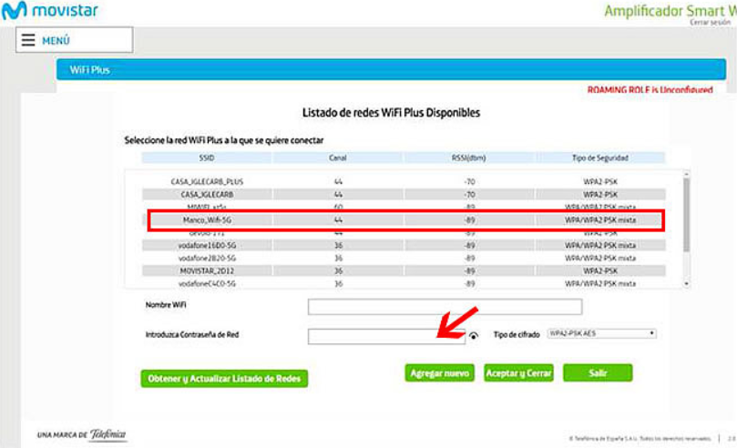 Y buscaremos la red Wifi 5GHz que emite el HGU al que vamos a asociar el XPORT:
