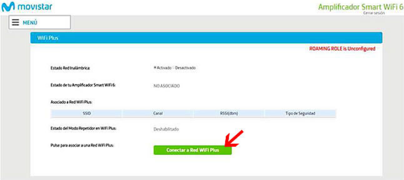 Dentro del Menú > WIFI PLUS presionaremos el botón “Conectar a Red WiFi Plus”