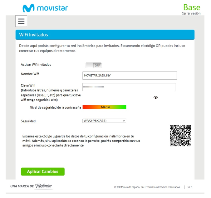 Activamos/Desactivamos el botón Activar WifiInvitados.