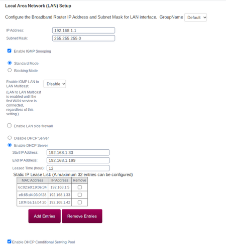 Respeta los rangos IPs preasignados por el HGU. Este crea 3 servidores DHCP a día de hoy. De nuevo, úsalos tal cual. Creo que Movistar usaba a partir de 230 el de sus dispositivos IoT, a partir del 200 los Decos y de 33 a 199 el resto.