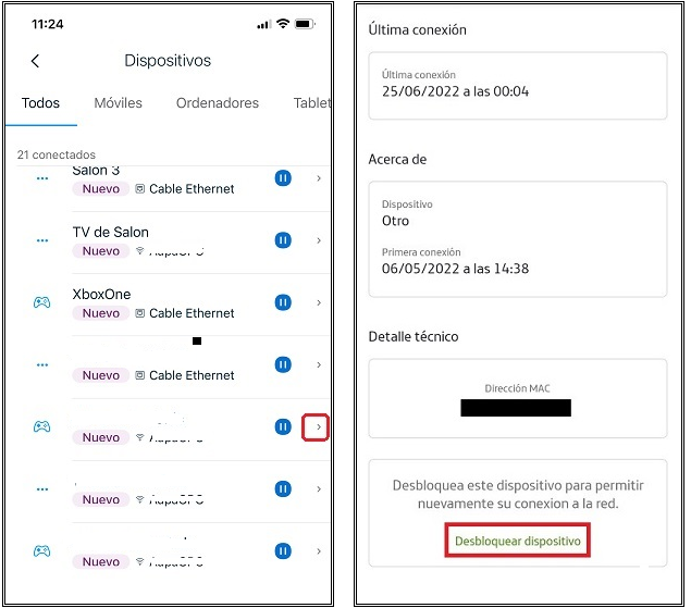 Lamentamos las molestias ocasionadas. Para verificar si algún equipo de su red se encuentra bloqueado y gestionarlo a través de la aplicación Smart WiFi, le indicamos realizar los siguientes pasos: