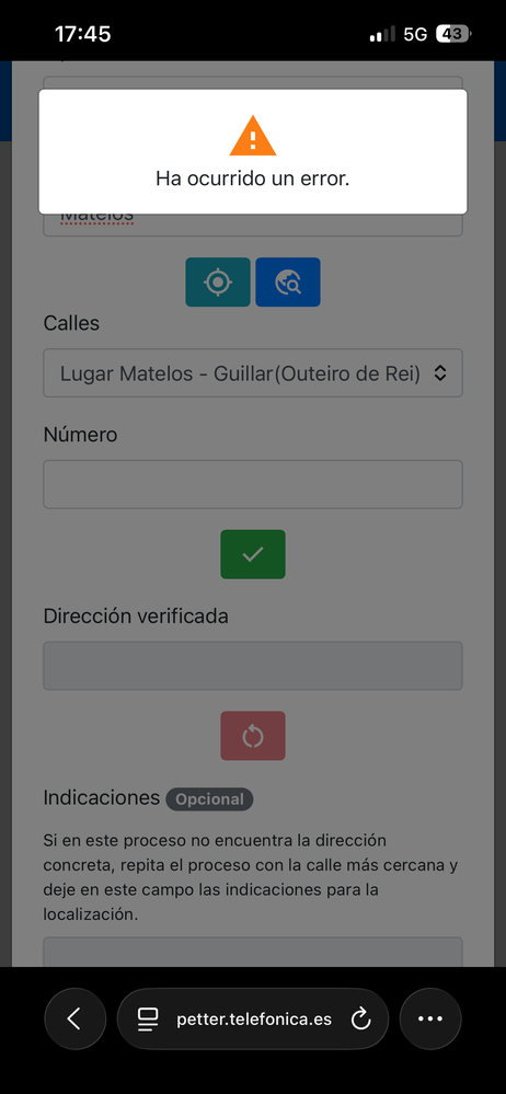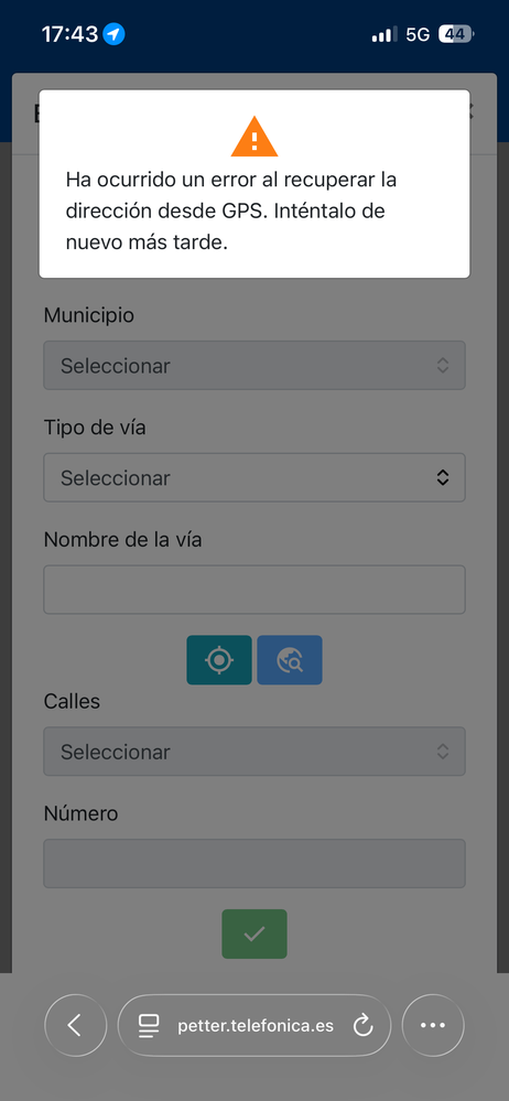 Hola, estoy intentando crear una incidencia en el sistema Petter pero me da error en la ubicación.